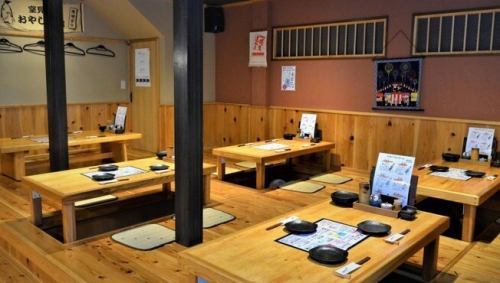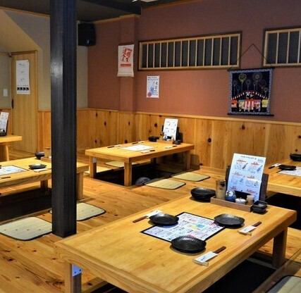 落ち着いた雰囲気の中でゆったりとした時間を過ごせる掘りごたつ席。友人や家族との宴会にも最適です。靴を脱いで寛げるので、小さなお子様連れのお客様も快適にご利用いただけます!!
